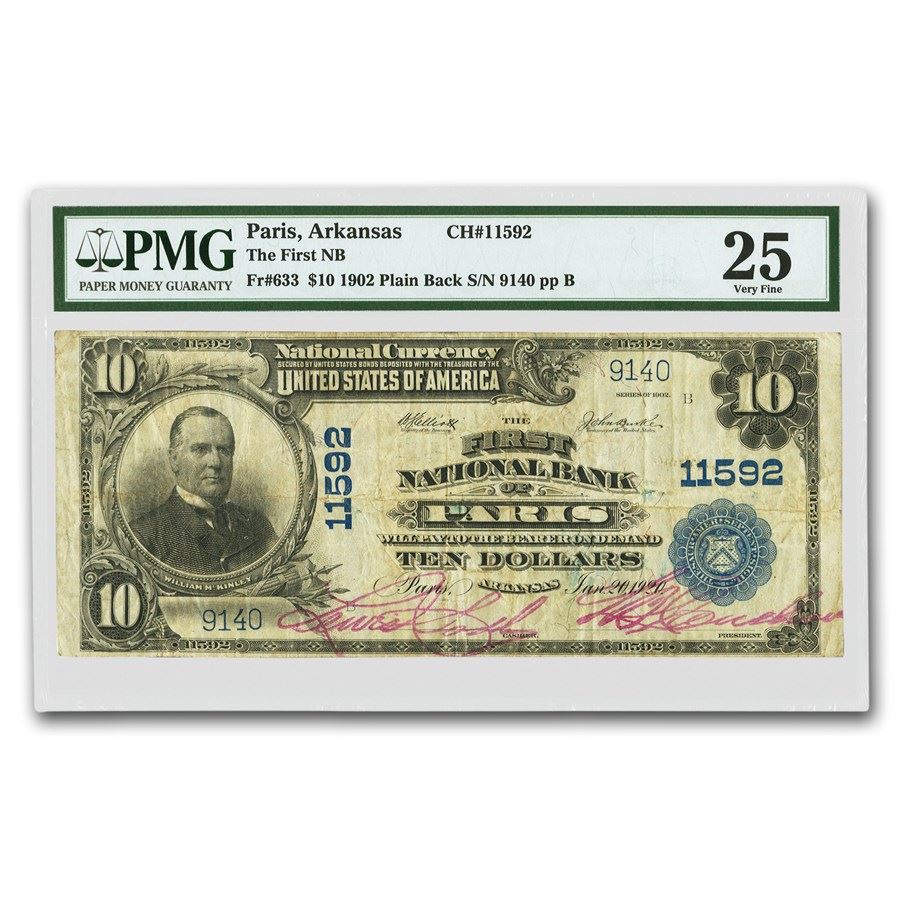 1902 Plain Back $10 Paris, AR VF-25 PMG (CH#11592)