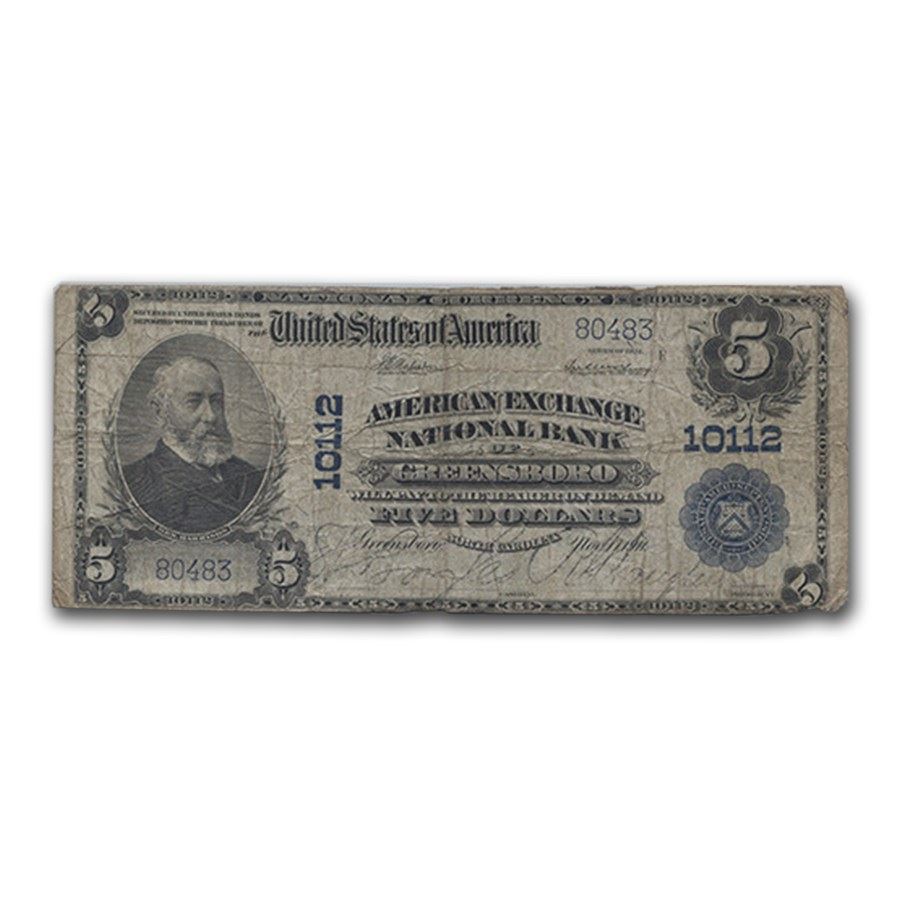 1902 Plain Back $5 Amer Exch Bk Greensboro NC F-12 PMG (CH#10112)