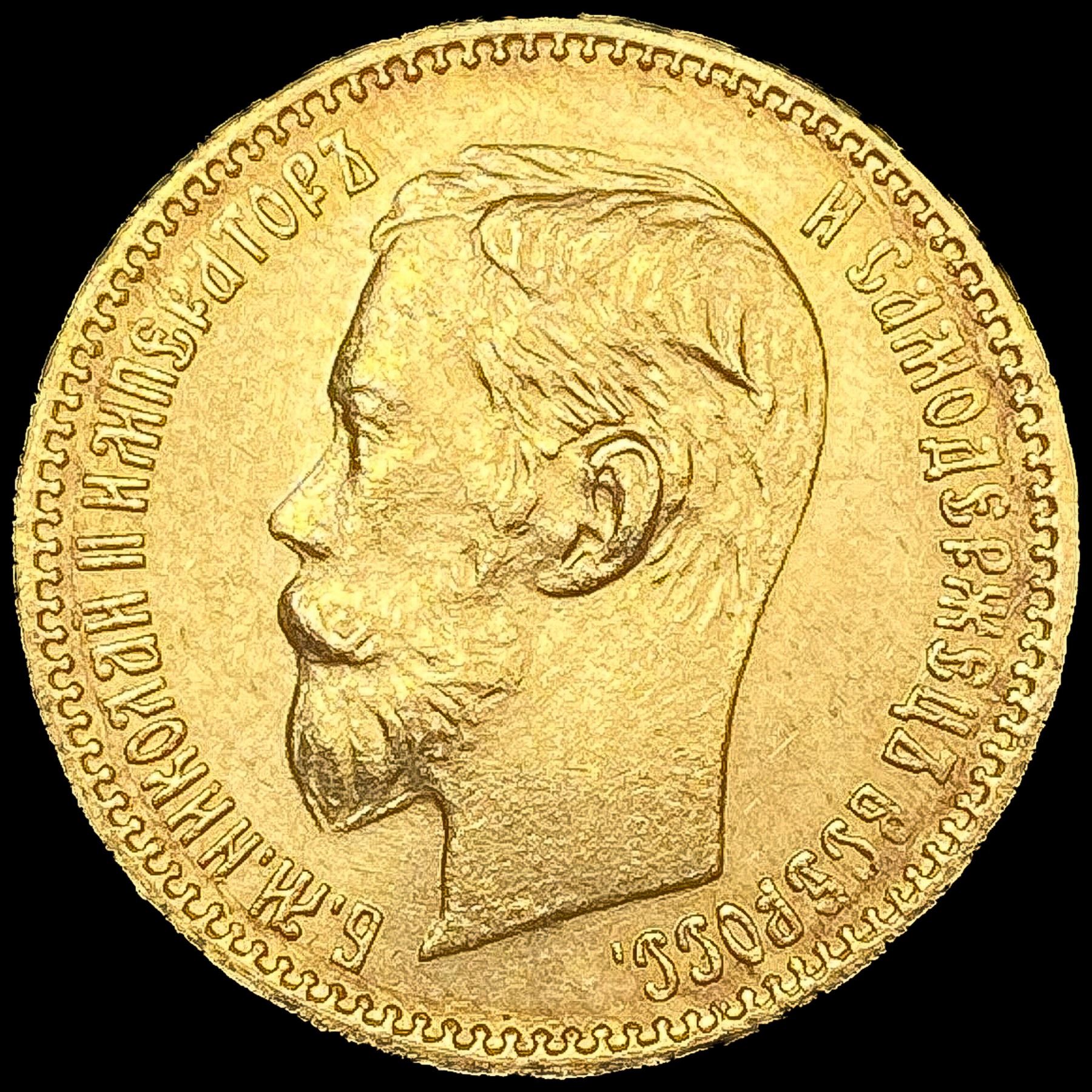 1902 Russia .1245oz Gold 5 Roubles UNCIRCULATED