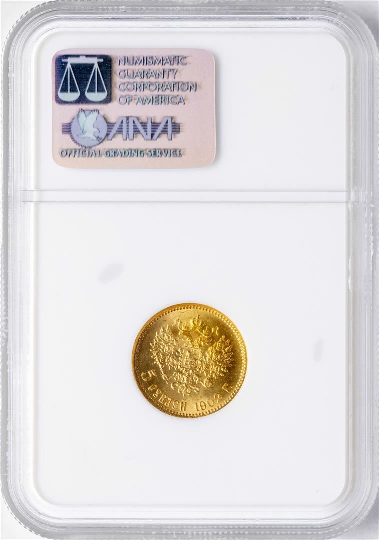 One 1902 Russia 5 Roubles Gold Coin NGC MS66. NGC Certified.