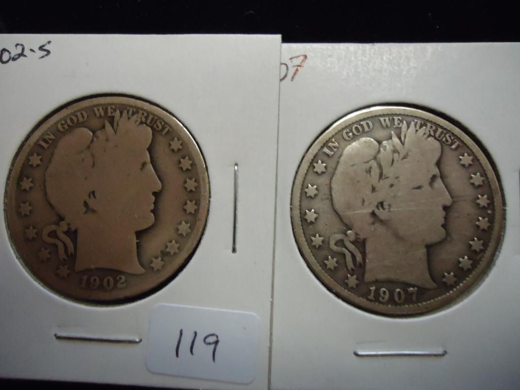 1902-S & 07 BARBER HALF DOLLARS