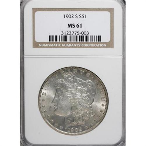 <B>1902-S $1 MS61 NGC.</B></I> NGC Census: (70/1635). PCGS Population (85/3174). Mintage: 1,530,000. Numismedia Wsl. Price for NGC/PCGS coin in MS61: $325. (#7282)<BR><BR><B>Coin Engraver:</B> George T. Morgan<BR><BR><b>Shipping:</b> Coins & Currency (<a target="_blank" href="http://www.heritageauctions.com/common/shipping.php">view shipping information</a>)