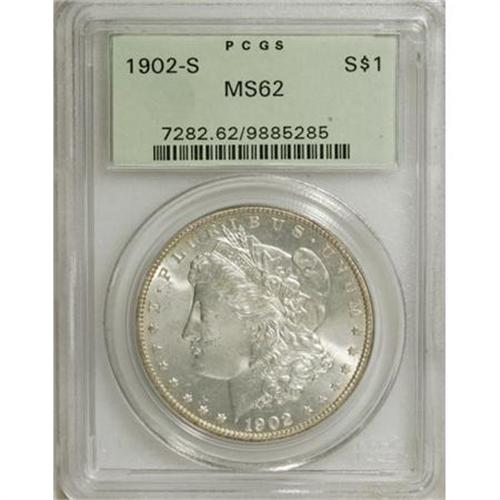 <B>1902-S $1 MS62 PCGS.</B></I> . PCGS Population (505/2664). NGC Census: (247/1387). Mintage: 1,530,000. Numismedia Wsl. Price for NGC/PCGS coin in MS62: $350. (#7282)<BR><BR><B>Coin Engraver:</B> George T. Morgan<BR><BR><b>Shipping:</b> Coins & Currency (<a target="_blank" href="http://www.heritageauctions.com/common/shipping.php">view shipping information</a>)
