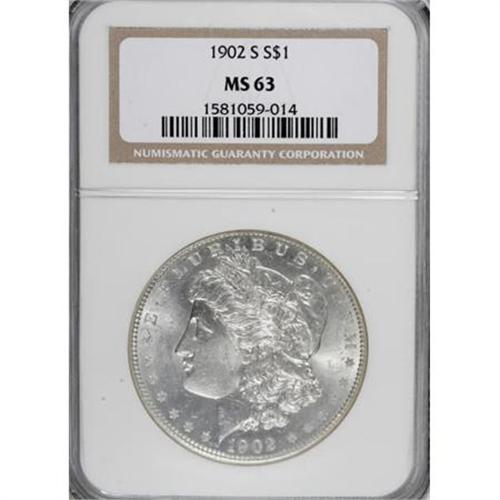 <B>1902-S $1 MS63 NGC.</B></I> NGC Census: (577/777). PCGS Population (1186/1405). Mintage: 1,530,000. Numismedia Wsl. Price for NGC/PCGS coin in MS63: $480. (#7282)<BR><BR><B>Coin Engraver:</B> George T. Morgan<BR><BR><b>Shipping:</b> Coins & Currency (<a target="_blank" href="http://www.heritageauctions.com/common/shipping.php">view shipping information</a>)