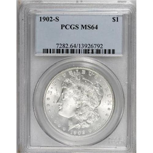 <B>1902-S $1 MS64 PCGS.</B></I> One of the more available of the early 20th century Morgan issues, the 1902-S has a mintage of only 1.53 million pieces. This well struck and flashy near-Gem example offers excellent visual appeal with few marks and minimal patina.<BR><BR><B>Coin Engraver:</B> George T. Morgan<BR><BR><b>Shipping:</b> Coins & Currency (<a target="_blank" href="http://www.heritageauctions.com/common/shipping.php">view shipping information</a>)