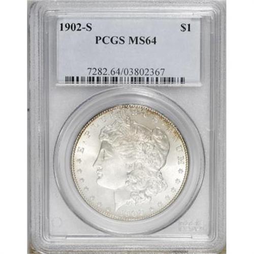 <B>1902-S $1 MS64 PCGS.</B></I> A vibrantly lustrous example with whispers of reddish-orange patina at the margins. Minimally marked for the grade, though the strike is soft and roller marks are evident on the cheek and neck.<BR><BR><B>Coin Engraver:</B> George T. Morgan<BR><BR><b>Shipping:</b> Coins & Currency (<a target="_blank" href="http://www.heritageauctions.com/common/shipping.php">view shipping information</a>)