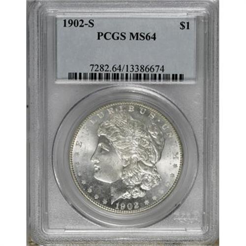 <B>1902-S $1 MS64 PCGS.</B></I> . PCGS Population (1191/266). NGC Census: (690/107). Mintage: 1,530,000. Numismedia Wsl. Price for NGC/PCGS coin in MS64: $825. (#7282)<BR><BR><B>Coin Engraver:</B> George T. Morgan<BR><BR><b>Shipping:</b> Coins & Currency (<a target="_blank" href="http://www.heritageauctions.com/common/shipping.php">view shipping information</a>)
