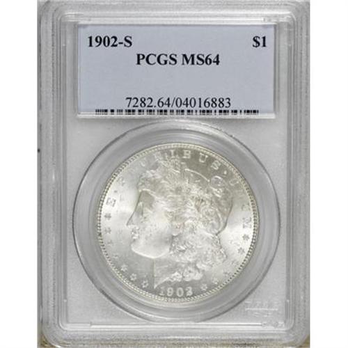 <B>1902-S $1 MS64 PCGS.</B></I> . PCGS Population (1191/266). NGC Census: (690/107). Mintage: 1,530,000. Numismedia Wsl. Price for NGC/PCGS coin in MS64: $825. (#7282)<BR><BR><B>Coin Engraver:</B> George T. Morgan<BR><BR><b>Shipping:</b> Coins & Currency (<a target="_blank" href="http://www.heritageauctions.com/common/shipping.php">view shipping information</a>)