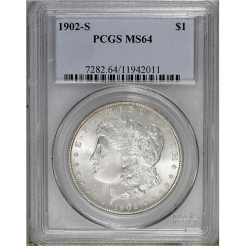 <B>1902-S $1 MS64 PCGS.</B></I> VAM-3. The 02 in the date is lightly repunched. This lustrous and faintly toned near-Gem has an exceptionally clean reverse and only inconsequential grazes on the portrait and left obverse field.<BR><BR><B>Coin Engraver:</B> George T. Morgan<BR><BR><b>Shipping:</b> Coins & Currency (<a target="_blank" href="http://www.heritageauctions.com/common/shipping.php">view shipping information</a>)