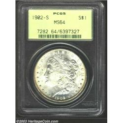 <TR><TD width="100%"><TABLE cellSpacing=1 cellPadding=3 width="100%" border=0><TBODY><TR><TD width="100%" bgColor=#79735c><FONT face=arial color=#ffffff size=3><B>Description</B> </FONT></TD></TR><TR><TD width="100%" bgColor=#ffffff><FONT face=arial size=2><B>1902-S $1 MS64 PCGS.</B></I> Gorgeous russet peripheries are seen on the reverse, which is lightly abraded with a few faint die polish lines (as struck) in the fields. The obverse is lustrous but more heavily marked, and the area above Liberty's ear is flat, prohibiting a higher grade. </FONT></TD></TR></TBODY></TABLE></TD></TR></TBODY></TABLE><BR><A name=PricesRealized></A><TABLE cellSpacing=0 cellPadding=0 width="100%" bgColor=#000000 border=0><TBODY><TR><TD width="100%"><TABLE cellSpacing=1 cellPadding=3 width="100%" border=0><TBODY><TR><TD width="100%" bgColor=#79735c><A name=PR><FONT face=arial color=#ffffff size=3><B>Previous Prices from Heritage Auctions</B> </FONT></A></TD></TR><TR><TD bgColor=#f6f6ed><TABLE cellSpacing=0 cellPadding=0 width="100%" border=1><TBODY><TR><TD align=middle width="33%"><B>Date</B></TD><TD align=middle width="33%"><B>Service</B></TD><TD align=middle width="33%"><B>Price</B></TD></TR><TR bgColor=whitesmoke><TD width="33%"><B>03/03/2003</B></TD><TD width="33%">PCGS</TD><TD width="33%">$460.00</TD></TR><TR bgColor=whitesmoke><TD width="33%"><B>03/03/2003</B></TD><TD width="33%">PCGS</TD><TD width="33%">$460.00</TD></TR><TR bgColor=whitesmoke><TD width="33%"><B>01/11/2003</B></TD><TD width="33%">PCGS</TD><TD width="33%">$460.00</TD></TR><TR bgColor=whitesmoke><TD width="33%"><B>01/11/2003</B></TD><TD width="33%">PCGS</TD><TD width="33%">$460.00</TD></TR><TR bgColor=whitesmoke><TD width="33%"><B>01/11/2003</B></TD><TD width="33%">PCGS</TD><TD width="33%">$460.00</TD></TR><TR bgColor=whitesmoke><TD width="33%"><B>11/23/2002</B></TD><TD width="33%">PCGS</TD><TD width="33%">$862.50</TD></TR><TR bgColor=whitesmoke><TD width="33%"><B>11/23/2002</B></TD><TD width="33%">PCGS</TD><TD width="33%">$862.50</TD></TR><TR bgColor=whitesmoke><TD width="33%"><B>09/30/2002</B></TD><TD width="33%">PCGS</TD><TD width="33%">$437.00</TD></TR><TR bgColor=whitesmoke><TD width="33%"><B>09/30/2002</B></TD><TD width="33%">PCGS</TD><TD width="33%">$437.00</TD></TR><TR bgColor=whitesmoke><TD width="33%"><B>09/30/2002</B></TD><TD width="33%">PCGS</TD><TD width="33%">$437.00</TD></TR><TR bgColor=whitesmoke><TD width="33%"><B>09/24/2002</B></TD><TD width="33%">PCGS</TD><TD width="33%">$414.00</TD></TR><TR bgColor=whitesmoke><TD width="33%"><B>09/24/2002</B></TD><TD width="33%">PCGS</TD><TD width="33%">$414.00</TD></TR><TR bgColor=whitesmoke><TD width="33%"><B>09/10/2002</B></TD><TD width="33%">PCGS</TD><TD width="33%">$437.00</TD></TR><TR bgColor=whitesmoke><TD width="33%"><B>09/10/2002</B></TD><TD width="33%">PCGS</TD><TD width="33%">$437.00</TD></TR><TR bgColor=whitesmoke><TD width="33%"><B>09/10/2002</B></TD><TD width="33%">PCGS</TD><TD width="33%">$437.00</TD></TR><TR bgColor=whitesmoke><TD width="33%"><B>09/03/2002</B></TD><TD width="33%">PCGS</TD><TD width="33%">$425.50</TD></TR><TR bgColor=whitesmoke><TD width="33%"><B>09/03/2002</B></TD><TD width="33%">PCGS</TD><TD width="33%">$425.50</TD></TR><TR bgColor=whitesmoke><TD width="33%"><B>06/22/2000</B></TD><TD width="33%">PCGS</TD><TD width="33%">$615.00</TD></TR><TR bgColor=whitesmoke><TD width="33%"><B>06/22/2000</B></TD><TD width="33%">PCGS</TD><TD width="33%">$615.00</TD></TR><TR bgColor=whitesmoke><TD width="33%"><B>06/22/2000</B></TD><TD width="33%">PCGS</TD><TD width="33%">$615.00</TD></TR><TR bgColor=whitesmoke><TD width="33%"><B>07/29/2002</B></TD><TD width="33%">PCGS</TD><TD width="33%">$414.00</TD></TR><TR bgColor=whitesmoke><TD width="33%"><B>07/29/2002</B></TD><TD width="33%">PCGS</TD><TD width="33%">$414.00</TD></TR><TR bgColor=whitesmoke><TD width="33%"><B>07/30/2002</B></TD><TD width="33%">PCGS</TD><TD width="33%">$402.50</TD></TR><TR bgColor=whitesmoke><TD width="33%"><B>07/30/2002</B></TD><TD width="33%">PCGS</TD><TD width="33%">$402.50</TD></TR><TR bgColor=whitesmoke><TD width="33%"><B>07/30/2002</B></TD><TD width="33%">PCGS</TD><TD width="33%">$402.50</TD></TR><TR bgColor=whitesmoke><TD width="33%"><B>06/08/2002</B></TD><TD width="33%">PCGS</TD><TD width="33%">$442.75</TD></TR><TR bgColor=whitesmoke><TD width="33%"><B>06/08/2002</B></TD><TD width="33%">PCGS</TD><TD width="33%">$442.75</TD></TR><TR bgColor=whitesmoke><TD width="33%"><B>04/23/2002</B></TD><TD width="33%">PCGS</TD><TD width="33%">$460.00</TD></TR><TR bgColor=whitesmoke><TD width="33%"><B>04/23/2002</B></TD><TD width="33%">PCGS</TD><TD width="33%">$460.00</TD></TR><TR bgColor=whitesmoke><TD width="33%"><B>04/23/2002</B></TD><TD width="33%">PCGS</TD><TD width="33%">$460.00</TD></TR><TR bgColor=whitesmoke><TD width="33%"><B>04/28/2002</B></TD><TD width="33%">PCGS</TD><TD width="33%">$425.50</TD></TR><TR bgColor=whitesmoke><TD width="33%"><B>04/28/2002</B></TD><TD width="33%">PCGS</TD><TD width="33%">$425.50</TD></TR><TR bgColor=whitesmoke><TD width="33%"><B>04/28/2002</B></TD><TD width="33%">PCGS</TD><TD width="33%">$437.00</TD></TR><TR bgColor=whitesmoke><TD width="33%"><B>04/28/2002</B></TD><TD width="33%">PCGS</TD><TD width="33%">$437.00</TD></TR><TR bgColor=whitesmoke><TD width="33%"><B>04/28/2002</B></TD><TD width="33%">PCGS</TD><TD width="33%">$437.00</TD></TR><TR bgColor=whitesmoke><TD width="33%"><B>04/27/2002</B></TD><TD width="33%">PCGS</TD><TD width="33%">$437.00</TD></TR><TR bgColor=whitesmoke><TD width="33%"><B>04/27/2002</B></TD><TD width="33%">PCGS</TD><TD width="33%">$437.00</TD></TR><TR bgColor=whitesmoke><TD width="33%"><B>04/09/2002</B></TD><TD width="33%">PCGS</TD><TD width="33%">$437.00</TD></TR><TR bgColor=whitesmoke><TD width="33%"><B>04/09/2002</B></TD><TD width="33%">PCGS</TD><TD width="33%">$437.00</TD></TR><TR bgColor=whitesmoke><TD width="33%"><B>04/09/2002</B></TD><TD width="33%">PCGS</TD><TD width="33%">$437.00</TD></TR><TR bgColor=whitesmoke><TD width="33%"><B>01/22/2
