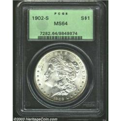 <TR><TD width="100%"><TABLE cellSpacing=1 cellPadding=3 width="100%" border=0><TBODY><TR><TD width="100%" bgColor=#79735c><FONT face=arial color=#ffffff size=3><B>Description</B> </FONT></TD></TR><TR><TD width="100%" bgColor=#ffffff><FONT face=arial size=2><B>1902-S $1 MS64 PCGS.</B></I> The peak of the 2 in the date is recut. A lustrous near-Gem that has merely a hint of gold patina along the obverse border. The reverse has faint roller marks, as made. A couple of wispy slide marks on the cheek prevent a higher grade. </FONT></TD></TR></TBODY></TABLE></TD></TR></TBODY></TABLE><BR><A name=PricesRealized></A><TABLE cellSpacing=0 cellPadding=0 width="100%" bgColor=#000000 border=0><TBODY><TR><TD width="100%"><TABLE cellSpacing=1 cellPadding=3 width="100%" border=0><TBODY><TR><TD width="100%" bgColor=#79735c><A name=PR><FONT face=arial color=#ffffff size=3><B>Previous Prices from Heritage Auctions</B> </FONT></A></TD></TR><TR><TD bgColor=#f6f6ed><TABLE cellSpacing=0 cellPadding=0 width="100%" border=1><TBODY><TR><TD align=middle width="33%"><B>Date</B></TD><TD align=middle width="33%"><B>Service</B></TD><TD align=middle width="33%"><B>Price</B></TD></TR><TR bgColor=whitesmoke><TD width="33%"><B>03/03/2003</B></TD><TD width="33%">PCGS</TD><TD width="33%">$460.00</TD></TR><TR bgColor=whitesmoke><TD width="33%"><B>03/03/2003</B></TD><TD width="33%">PCGS</TD><TD width="33%">$460.00</TD></TR><TR bgColor=whitesmoke><TD width="33%"><B>01/11/2003</B></TD><TD width="33%">PCGS</TD><TD width="33%">$460.00</TD></TR><TR bgColor=whitesmoke><TD width="33%"><B>01/11/2003</B></TD><TD width="33%">PCGS</TD><TD width="33%">$460.00</TD></TR><TR bgColor=whitesmoke><TD width="33%"><B>01/11/2003</B></TD><TD width="33%">PCGS</TD><TD width="33%">$460.00</TD></TR><TR bgColor=whitesmoke><TD width="33%"><B>11/23/2002</B></TD><TD width="33%">PCGS</TD><TD width="33%">$862.50</TD></TR><TR bgColor=whitesmoke><TD width="33%"><B>11/23/2002</B></TD><TD width="33%">PCGS</TD><TD width="33%">$862.50</TD></TR><TR bgColor=whitesmoke><TD width="33%"><B>09/30/2002</B></TD><TD width="33%">PCGS</TD><TD width="33%">$437.00</TD></TR><TR bgColor=whitesmoke><TD width="33%"><B>09/30/2002</B></TD><TD width="33%">PCGS</TD><TD width="33%">$437.00</TD></TR><TR bgColor=whitesmoke><TD width="33%"><B>09/30/2002</B></TD><TD width="33%">PCGS</TD><TD width="33%">$437.00</TD></TR><TR bgColor=whitesmoke><TD width="33%"><B>09/24/2002</B></TD><TD width="33%">PCGS</TD><TD width="33%">$414.00</TD></TR><TR bgColor=whitesmoke><TD width="33%"><B>09/24/2002</B></TD><TD width="33%">PCGS</TD><TD width="33%">$414.00</TD></TR><TR bgColor=whitesmoke><TD width="33%"><B>09/10/2002</B></TD><TD width="33%">PCGS</TD><TD width="33%">$437.00</TD></TR><TR bgColor=whitesmoke><TD width="33%"><B>09/10/2002</B></TD><TD width="33%">PCGS</TD><TD width="33%">$437.00</TD></TR><TR bgColor=whitesmoke><TD width="33%"><B>09/10/2002</B></TD><TD width="33%">PCGS</TD><TD width="33%">$437.00</TD></TR><TR bgColor=whitesmoke><TD width="33%"><B>09/03/2002</B></TD><TD width="33%">PCGS</TD><TD width="33%">$425.50</TD></TR><TR bgColor=whitesmoke><TD width="33%"><B>09/03/2002</B></TD><TD width="33%">PCGS</TD><TD width="33%">$425.50</TD></TR><TR bgColor=whitesmoke><TD width="33%"><B>06/22/2000</B></TD><TD width="33%">PCGS</TD><TD width="33%">$615.00</TD></TR><TR bgColor=whitesmoke><TD width="33%"><B>06/22/2000</B></TD><TD width="33%">PCGS</TD><TD width="33%">$615.00</TD></TR><TR bgColor=whitesmoke><TD width="33%"><B>06/22/2000</B></TD><TD width="33%">PCGS</TD><TD width="33%">$615.00</TD></TR><TR bgColor=whitesmoke><TD width="33%"><B>07/29/2002</B></TD><TD width="33%">PCGS</TD><TD width="33%">$414.00</TD></TR><TR bgColor=whitesmoke><TD width="33%"><B>07/29/2002</B></TD><TD width="33%">PCGS</TD><TD width="33%">$414.00</TD></TR><TR bgColor=whitesmoke><TD width="33%"><B>07/30/2002</B></TD><TD width="33%">PCGS</TD><TD width="33%">$402.50</TD></TR><TR bgColor=whitesmoke><TD width="33%"><B>07/30/2002</B></TD><TD width="33%">PCGS</TD><TD width="33%">$402.50</TD></TR><TR bgColor=whitesmoke><TD width="33%"><B>07/30/2002</B></TD><TD width="33%">PCGS</TD><TD width="33%">$402.50</TD></TR><TR bgColor=whitesmoke><TD width="33%"><B>06/08/2002</B></TD><TD width="33%">PCGS</TD><TD width="33%">$442.75</TD></TR><TR bgColor=whitesmoke><TD width="33%"><B>06/08/2002</B></TD><TD width="33%">PCGS</TD><TD width="33%">$442.75</TD></TR><TR bgColor=whitesmoke><TD width="33%"><B>04/23/2002</B></TD><TD width="33%">PCGS</TD><TD width="33%">$460.00</TD></TR><TR bgColor=whitesmoke><TD width="33%"><B>04/23/2002</B></TD><TD width="33%">PCGS</TD><TD width="33%">$460.00</TD></TR><TR bgColor=whitesmoke><TD width="33%"><B>04/23/2002</B></TD><TD width="33%">PCGS</TD><TD width="33%">$460.00</TD></TR><TR bgColor=whitesmoke><TD width="33%"><B>04/28/2002</B></TD><TD width="33%">PCGS</TD><TD width="33%">$425.50</TD></TR><TR bgColor=whitesmoke><TD width="33%"><B>04/28/2002</B></TD><TD width="33%">PCGS</TD><TD width="33%">$425.50</TD></TR><TR bgColor=whitesmoke><TD width="33%"><B>04/28/2002</B></TD><TD width="33%">PCGS</TD><TD width="33%">$437.00</TD></TR><TR bgColor=whitesmoke><TD width="33%"><B>04/28/2002</B></TD><TD width="33%">PCGS</TD><TD width="33%">$437.00</TD></TR><TR bgColor=whitesmoke><TD width="33%"><B>04/28/2002</B></TD><TD width="33%">PCGS</TD><TD width="33%">$437.00</TD></TR><TR bgColor=whitesmoke><TD width="33%"><B>04/27/2002</B></TD><TD width="33%">PCGS</TD><TD width="33%">$437.00</TD></TR><TR bgColor=whitesmoke><TD width="33%"><B>04/27/2002</B></TD><TD width="33%">PCGS</TD><TD width="33%">$437.00</TD></TR><TR bgColor=whitesmoke><TD width="33%"><B>04/09/2002</B></TD><TD width="33%">PCGS</TD><TD width="33%">$437.00</TD></TR><TR bgColor=whitesmoke><TD width="33%"><B>04/09/2002</B></TD><TD width="33%">PCGS</TD><TD width="33%">$437.00</TD></TR><TR bgColor=whitesmoke><TD width="33%"><B>04/09/2002</B></TD><TD width="33%">PCGS</TD><TD width="33%">$437.00</TD></TR><TR bgColor=whitesmoke><TD width="33%"><B>01/22/2002</B></TD><TD width=