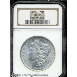 <B>1902<S$1> MS65 NGC.</B></I> Bright and satiny with a smooth, rounded cheek and exceptionally clean surfaces overall. Just a bit of definition is lacking at the central regions. <BR><BR><B>Important notice:</B> Heritage usually auctions material at the rate of 200-250 lots per hour. On some occasions eBay Live bid software or the Internet may not be able to keep up with the pace of the auction. We recommend placing a realistic absentee bid now as insurance to avoid disappointment. Occasionally the auctioneer may eliminate or reject an eBay Live bid, and the auctioneer may also reopen a lot after the close of the eBay live bidding (usually because we missed an audience bid), and may reject your bid even if it shows you as the winning bidder. By bidding via eBay Live, you agree that Heritage may award the lot to another bidder at its sole discretion under the circumstances described above or any other reasonable circumstances. Since eBay bids are not shown to us until we open the lot on the floor, we treat those bids just like floor bids. In most cases the floor responds before the eBay bid is presented to us, due to Internet lag time, so for consistency we have made it a policy that floor bids are always considered first over tie eBay live bids. Also please note that all Heritage lots purchased through eBay Live carry a 20% Buyer's Premium. Please make sure you read the Terms and Conditions before you bid.
