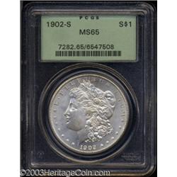 <table><tr><td><TABLE cellSpacing=0 cellPadding=0 width="100%" bgColor=#000000 border=0><TBODY> <TR><TD width="100%"><TABLE cellSpacing=1 cellPadding=3 width="100%" border=0><TBODY><TR><TD width="100%" bgColor=#79735c><FONT face=arial color=#ffffff size=3><B>Description</B> </FONT></TD></TR><TR><TD width="100%" bgColor=#ffffff><FONT face=arial size=2><B>1902-S $1 MS65 PCGS.</B></I> This scarcer, late date S-mint dollar is seldom located in strict Gem condition and is even rarer with any degree of reflectivity in the fields. This is a solid MS65 example that shows bright, semi-prooflike fields. Well struck throughout, the surfaces are brilliant throughout with no large or distracting blemishes on either side. Population: 146 in 65, 20 finer (9/03).<BR><I>From the Holman Family Collection.</B></I> </FONT></TD></TR></TBODY></TABLE></TD></TR></TBODY></TABLE><BR><A name=PricesRealized></A><TABLE cellSpacing=0 cellPadding=0 width="100%" bgColor=#000000 border=0><TBODY><TR><TD width="100%"><TABLE cellSpacing=1 cellPadding=3 width="100%" border=0><TBODY><TR><TD width="100%" bgColor=#79735c><A name=PR><FONT face=arial color=#ffffff size=3><B>Previous Prices from Heritage Auctions</B> </FONT></A></TD></TR><TR><TD bgColor=#f6f6ed><TABLE cellSpacing=0 cellPadding=0 width="100%" border=1><TBODY><TR><TD align=middle width="33%"><B>Date</B></TD><TD align=middle width="33%"><B>Service</B></TD><TD align=middle width="33%"><B>Price</B></TD></TR><TR bgColor=whitesmoke><TD width="33%"><B>01/29/2002</B></TD><TD width="33%">NGC</TD><TD width="33%">$1,782.50</TD></TR><TR bgColor=whitesmoke><TD width="33%"><B>03/01/2003</B></TD><TD width="33%">PCGS</TD><TD width="33%">$2,127.50</TD></TR><TR bgColor=whitesmoke><TD width="33%"><B>04/27/2002</B></TD><TD width="33%">NGC</TD><TD width="33%">$1,897.50</TD></TR><TR bgColor=whitesmoke><TD width="33%"><B>04/27/2002</B></TD><TD width="33%">PCGS</TD><TD width="33%">$2,185.00</TD></TR><TR bgColor=whitesmoke><TD width="33%"><B>01/12/2002</B></TD><TD width="33%">PCGS</TD><TD width="33%">$1,955.00</TD></TR><TR bgColor=whitesmoke><TD width="33%"><B>10/06/2001</B></TD><TD width="33%">NGC</TD><TD width="33%">$1,611.15</TD></TR><TR bgColor=whitesmoke><TD width="33%"><B>04/05/2001</B></TD><TD width="33%">PCGS</TD><TD width="33%">$1,840.00</TD></TR><TR bgColor=whitesmoke><TD width="33%"><B>05/05/2000</B></TD><TD width="33%">PCGS</TD><TD width="33%">$1,955.00</TD></TR><TR bgColor=whitesmoke><TD width="33%"><B>05/05/2000</B></TD><TD width="33%">PCGS</TD><TD width="33%">$2,070.00</TD></TR><TR bgColor=whitesmoke><TD width="33%"><B>09/24/1999</B></TD><TD width="33%">PCGS</TD><TD width="33%">$2,760.00</TD></TR><TR bgColor=whitesmoke><TD width="33%"><B>09/13/1997</B></TD><TD width="33%">PCGS</TD><TD width="33%">$1,897.50</TD></TR><TR bgColor=whitesmoke><TD width="33%"><B>08/02/1997</B></TD><TD width="33%">ANACS</TD><TD width="33%">$1,150.00</TD></TR><TR bgColor=whitesmoke><TD width="33%"><B>06/01/1996</B></TD><TD width="33%">PCGS</TD><TD width="33%">$3,630.00</TD></TR><TR bgColor=whitesmoke><TD width="33%"><B>10/22/1993</B></TD><TD width="33%">NGC</TD><TD width="33%">$1,430.00</TD></TR><TR bgColor=whitesmoke><TD width="33%"><B>07/31/1993</B></TD><TD width="33%">NGC</TD><TD width="33%">$1,430.00</TD></TR><TR bgColor=whitesmoke><TD width="33%"><B>08/01/1999</B></TD><TD width="33%">PCGS</TD><TD width="33%">$2,674.00</TD></TR><TR bgColor=whitesmoke><TD width="33%"><B>11/01/1999</B></TD><TD width="33%">PCGS</TD><TD width="33%">$1,925.00</TD></TR><TR bgColor=whitesmoke><TD width="33%"><B>02/01/1999</B></TD><TD width="33%">PCGS</TD><TD width="33%">$2,350.00</TD></TR><TR bgColor=whitesmoke><TD width="33%"><B>02/18/2002</B></TD><TD width="33%">PCGS</TD><TD width="33%">$1,840.00</TD></TR><TR bgColor=whitesmoke><TD width="33%"><B>02/01/2001</B></TD><TD width="33%">PCGS</TD><TD width="33%">$2,645.00</TD></TR><TR bgColor=whitesmoke><TD width="33%"><B>02/01/2000</B></TD><TD width="33%">NGC</TD><TD width="33%">$1,725.00</TD></TR><TR bgColor=whitesmoke><TD width="33%"><B>05/01/1996</B></TD><TD width="33%">PCGS</TD><TD width="33%">$1,595.00</TD></TR></TBODY></TABLE></TD></TR><TR><TD bgColor=#ffffff><FONT face=arial size=1 ?>PLEASE NOTE: All prices realized reflect the final hammer price PLUS the buyer's premium in auctions that charge a buyer's premium. Each item has a notation at the top of the listing indicating whether that lot included a buyer's premium. Example: A item that sells with a final hammer price of $100 and a 20% buyer's premium will display with a price realized of $120. All information listed is intended to be as accurate as possible, but errors are possible. Please use this guide carefully and inform us of any inaccuracies. </FONT></TD></TR></TBODY></TABLE></TD></TR></TBODY></TABLE><BR><TABLE cellSpacing=0 cellPadding=0 width="100%" bgColor=#000000 border=0><TBODY><TR><TD width="100%"><TABLE cellSpacing=1 cellPadding=3 width="100%" border=0><TBODY><TR><TD width="100%" bgColor=#79735c colSpan=6><FONT face=arial color=#ffffff size=3><B>Price Guide*</B> </FONT></TD></TR><TR bgColor=#f6f6ed><TD align=middle><B>Grade</B> </TD><TD align=middle><B>Coin World<BR>(Trends)</B> </TD><TD align=middle><B>Numismedia<BR>Retail</B> </TD><TD align=middle><B>Numismedia<BR>Wholesale</B> </TD><TD align=middle><B>Coin<BR>Universe</B> </TD><TD align=middle><B>Heritage<BR>Value Index</B> </TD></TR><TR bgColor=#ffffff><TD align=middle>64</TD><TD align=right>$600.00</TD><TD align=right>$590.00</TD><TD align=right>$472.00</TD><TD align=right>$675.00</TD><TD align=right>$459.25</TD></TR><TR style="FONT-WEIGHT: bold" bgColor=#cccfdd><TD align=middle>65</TD><TD align=right>$3,100.00</TD><TD align=right>---</TD><TD align=right>$2,450.00</TD><TD align=right>$3,000.00</TD><TD align=right>$2,030.00</TD></TR><TR bgColor=#ffffff><TD align=middle>66</TD><TD align=right>$8,000.00</TD><TD align=right>---</TD><TD align=right>$8,050.00</TD><TD align=right>$8,500.00</TD><TD align=right>$5,682.50</TD></TR><TR bgColor=#ffffff><TD