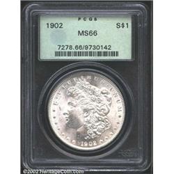 1902 S$1 MS66 PCGS. Brilliant, lustrous, and exquisitely preserved with an above average strike. Somewhat scarce at this rarified level of preservation. Important notice: We expect to be auctioning lots at the rate of 200-250 per hour. Sometimes eBay Premier live bid software cannot keep up with that pace, so we strongly recommend that you place a realistic proxy bid now as insurance to avoid disappointment. Also please note that all Heritage/CAA lots purchased through eBay Premier carry a 20% Buyer's Premium. Please make sure you read the Terms and Conditions.
