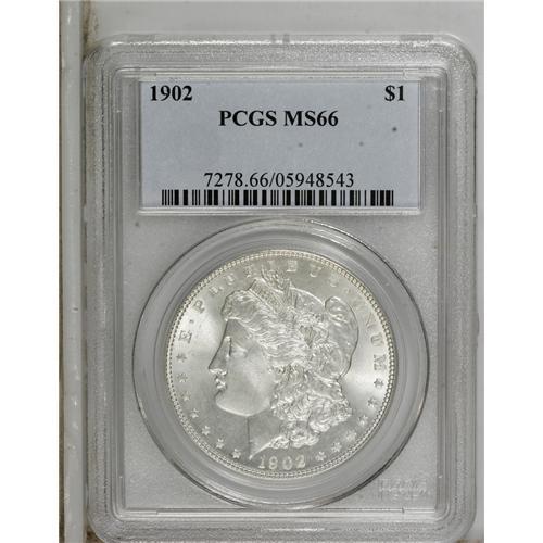 1902 S$1 MS66 PCGS. Untoned, lustrous surfaces are wel