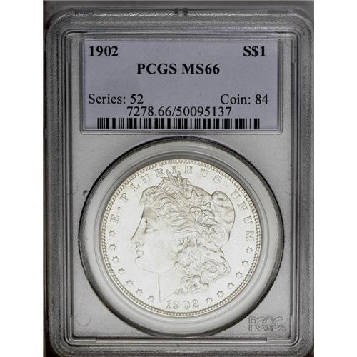<B>1902<img border='0' src='http://www.heritagecoins.com/images/star.gif' width=10 height=10>$1> MS66 PCGS.</B></I> Whispers of faint tan-gold color adhere to lustrous surfaces that exhibit adequately impressed motifs. A few light abrasions in the hair beneath Liberty's ear and on the eagle's breast are mentioned for accuracy. PCGS has seen 17 examples grading higher (3/06). <BR><BR><B>Important notice:</B> Heritage usually auctions material at the rate of 200-250 lots per hour. On some occasions eBay Live bid software or the Internet may not be able to keep up with the pace of the auction. We recommend placing a realistic absentee bid now as insurance to avoid disappointment. Occasionally the auctioneer may eliminate or reject an eBay Live bid, and the auctioneer may also reopen a lot after the close of the eBay live bidding (usually because we missed an audience bid), and may reject your bid even if it shows you as the winning bidder. By bidding via eBay Live, you agree that Heritage may award the lot to another bidder at its sole discretion under the circumstances described above or any other reasonable circumstances. Since eBay bids are not shown to us until we open the lot on the floor, we treat those bids just like floor bids. In most cases the floor responds before the eBay bid is presented to us, due to Internet lag time, so for consistency we have made it a policy that floor bids are always considered first over tie eBay live bids. Also please note that all Heritage lots purchased through eBay Live carry a 20% Buyer's Premium. Please make sure you read the Terms and Conditions before you bid. This lot is being auctioned in conjunction with a live floor auction by Heritage Galleries & Auctioneers. All final auction and invoice information will be supplied by Heritage Galleries & Auctioneers, and all other information should be considered preliminary. Lot:3769 <BR><BR><B>Winning Notification and Billing:</B> After the FINAL session in this auction is complete, Heritage will send e-mail and snail mail invoices. This process normally takes several days. All final auction and invoice information will be supplied by Heritage Galleries & Auctioneers, and all other information should be considered preliminary. <BR><BR>This auction will be conducted on a live auction floor and over the Internet through eBay Live. If you choose to place an absentee bid, please take a moment to <font color='#0000ff'><u><a href='http://pages.ebay.com/liveauctions/help/before/laabsentee.html'>learn how eBay Live absentee bidding works</a></u></font><font color='#000000'>