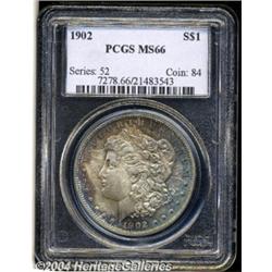 <B>1902<S$1> MS66 PCGS.</B></I> The obverse is toned in medium silver-gray, electric-blue, deep reddish-gold, and crimson colors, in a somewhat mottled fashion. The reverse is almost fully brilliant with some soft golden color at the border. A lustrous premium Gem with gorgeously preserved surfaces and a sharp strike. <BR><BR><B>Important notice:</B> Heritage usually auctions material at the rate of 200-250 lots per hour. On some occasions eBay Live bid software or the Internet may not be able to keep up with the pace of the auction. We recommend placing a realistic absentee bid now as insurance to avoid disappointment. Occasionally the auctioneer may eliminate or reject an eBay Live bid, and the auctioneer may also reopen a lot after the close of the eBay live bidding (usually because we missed an audience bid), and may reject your bid even if it shows you as the winning bidder. By bidding via eBay Live, you agree that Heritage may award the lot to another bidder at its sole discretion under the circumstances described above or any other reasonable circumstances. Since eBay bids are not shown to us until we open the lot on the floor, we treat those bids just like floor bids. In most cases the floor responds before the eBay bid is presented to us, due to Internet lag time, so for consistency we have made it a policy that floor bids are always considered first over tie eBay live bids. Also please note that all Heritage lots purchased through eBay Live carry a 20% Buyer's Premium. Please make sure you read the Terms and Conditions before you bid. </span></font></tr></table></td></tr></table>