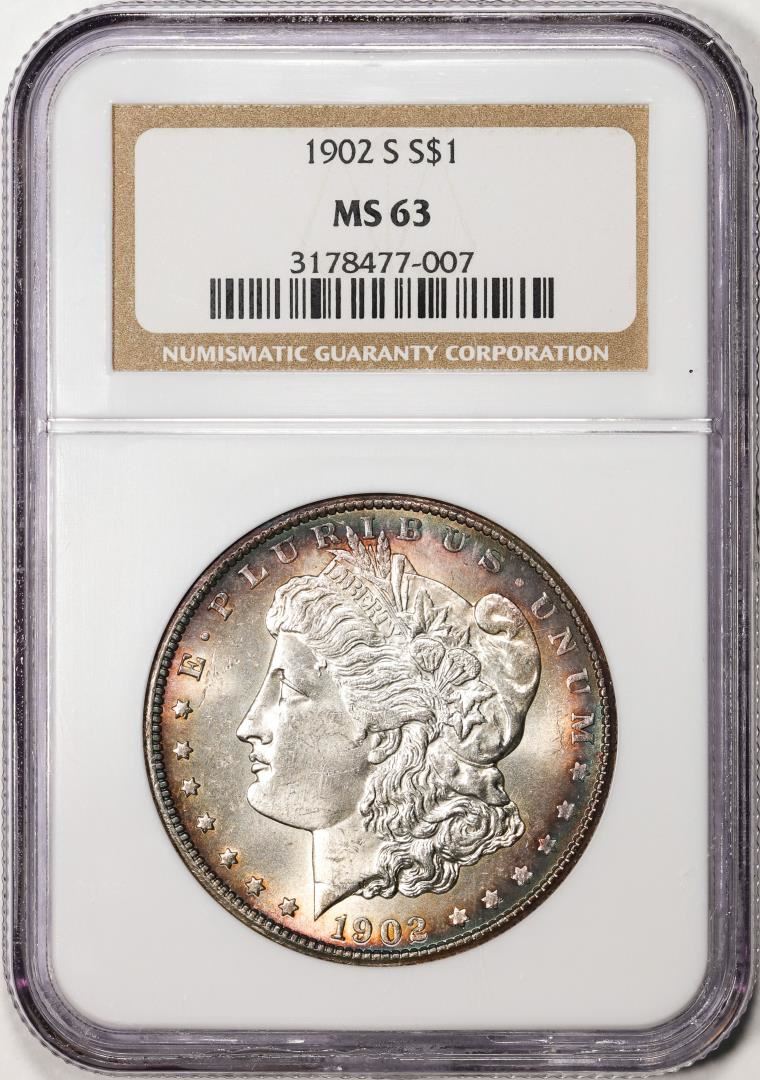 One 1902-S $1 Morgan Silver Dollar Coin NGC MS63 Amazing Color. NGC Certified.