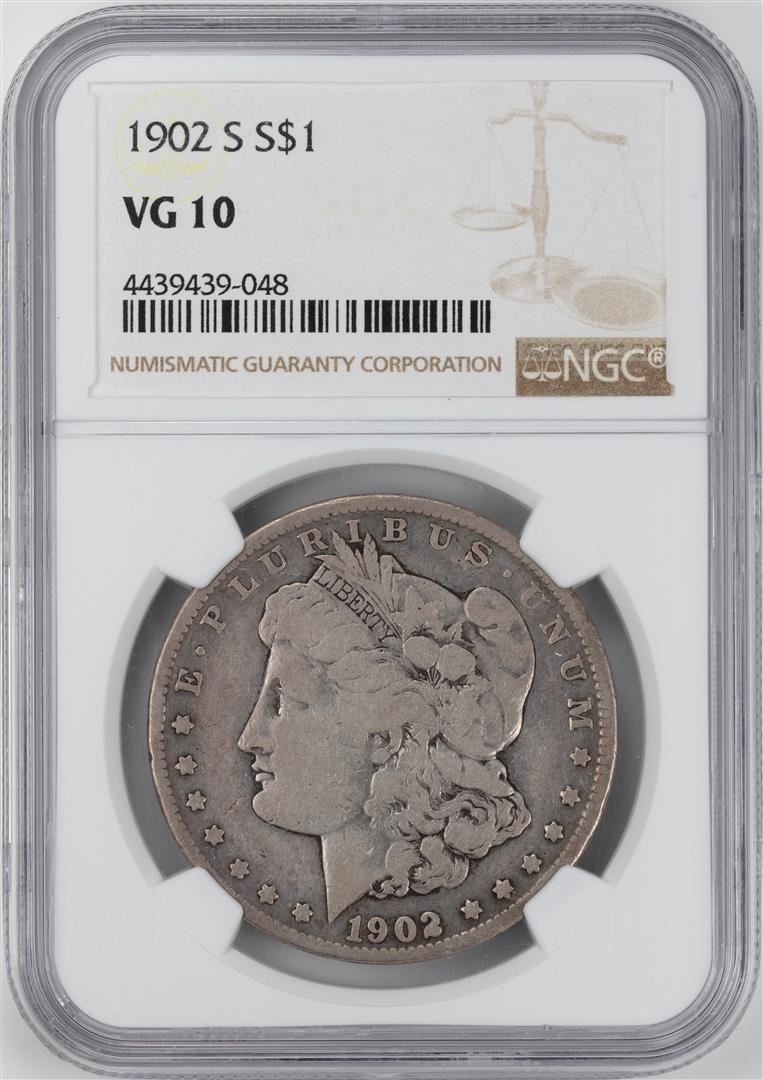 One 1902-S $1 Morgan Silver Dollar Coin NGC VG10. NGC Certified.