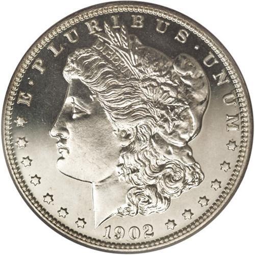 <B>1902<img border='0' src='http://www.heritagecoins.com/images/star.gif' width=10 height=10>$1> PR65 PCGS.</B></I> First of the no-contrast years of proofing, this dazzling proof Morgan dollar has uniformly bright surfaces that show just the slightest trace of light golden toning. A couple of minor hairlines are seen on the obverse after close examination, but these hardly detract. Sharp and boldly defined throughout. Population: 20 in 65, 20 finer (4/06).
