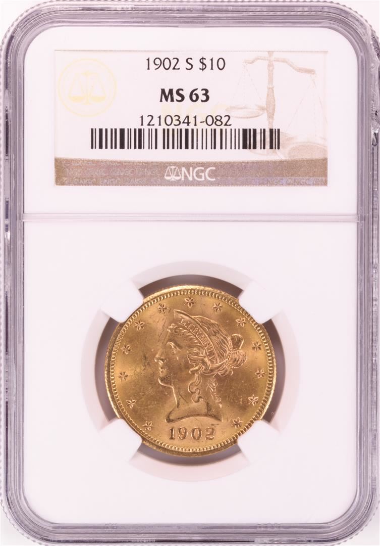 One 1902-S $10 Liberty Head Eagle Gold Coin NGC MS63. NGC Certified.