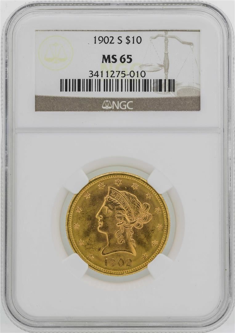 One 1902-S $10 Liberty Head Eagle Gold Coin NGC MS65. NGC Certified.