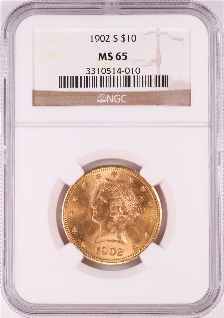 One 1902-S $10 Liberty Head Eagle Gold Coin NGC MS65. NGC Certified.