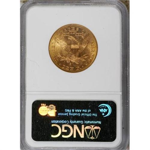 <B>1902-S $10 MS64 NGC.</B></I> Energetic luster invigorates this pale peach and olive near-Gem. Intricately struck, and high end for the grade due to its paucity of marks. The reverse border has a small strike-through at 2 o'clock.<BR><BR><B>Coin Engraver:</B> Christian Gobrecht<BR><BR><b>Shipping:</b> Coins & Currency (<a target="_blank" href="http://www.heritageauctions.com/common/shipping.php">view shipping information</a>)