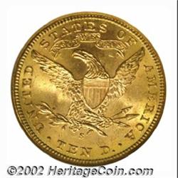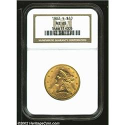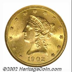 1902-S $10 MS65 NGC. After the 1901-S, the 1902-S is the most readily obtainable Liberty Eagle from the San Francisco Mint. This date, however, is still conditionally scarce as a Gem. Fully lustrous with rich, original, orange-gold color, both sides display razor sharp striking detail. There are no singularly bothersome abrasions. Important notice: We expect to be auctioning lots at the rate of 200-250 per hour. Sometimes eBay Premier live bid software cannot keep up with that pace, so we strongly recommend that you place a realistic proxy bid now as insurance to avoid disappointment. Also please note that all Heritage/CAA lots purchased through eBay Premier carry a 20% Buyer's Premium. Please make sure you read the Terms and Conditions.