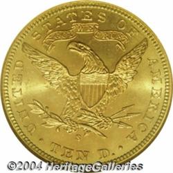 <table><tr><td><table><tr><td>1902-S $10 MS66 NGC. A superior type coin and much scarcer in high grades than the 1901-S. The striking details are fully brought up on each side and there are no obvious or distracting abrasions. Most of each side has orange-gold coloration with a noticeable accent of lilac coloration around the peripheries. Population: 8 in 66, 0 finer (3/04). <BR><BR><B>Important notice:</B> Heritage usually auctions material at the rate of 200-250 lots per hour. On some occasions eBay Live bid software or the Internet may not be able to keep up with the pace of the auction. We recommend placing a realistic absentee bid now as insurance to avoid disappointment. Occasionally the auctioneer may eliminate or reject an eBay Live bid, and the auctioneer may also reopen a lot after the close of the eBay live bidding (usually because we missed an audience bid), and may reject your bid even if it shows you as the winning bidder. By bidding via eBay Live, you agree that Heritage may award the lot to another bidder at its sole discretion under the circumstances described above or any other reasonable circumstances. Since eBay bids are not shown to us until we open the lot on the floor, we treat those bids just like floor bids. In most cases the floor responds before the eBay bid is presented to us, due to Internet lag time, so for consistency we have made it a policy that floor bids are always considered first over tie eBay live bids. Also please note that all Heritage lots purchased through eBay Live carry a 20% Buyer's Premium. Please make sure you read the Terms and Conditions before you bid. <BR><BR><B>IMPORTANT ANNOUNCEMENT ABOUT RESERVES:</B> Heritage now divulges all reserves on its web site 7 days before every auction. If you want to know whether the reserve on this lot has been met, and if not, what the reserve amount is, please visit this lot page on the HeritageCoin.com web site, or email: bid@HeritageGalleries.com </span></font></td></tr></table></td></tr></table>