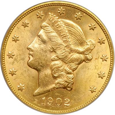 1902-S $20 Liberty. PCGS graded MS-61. Lovely golden shades (PCGS # 9042) .