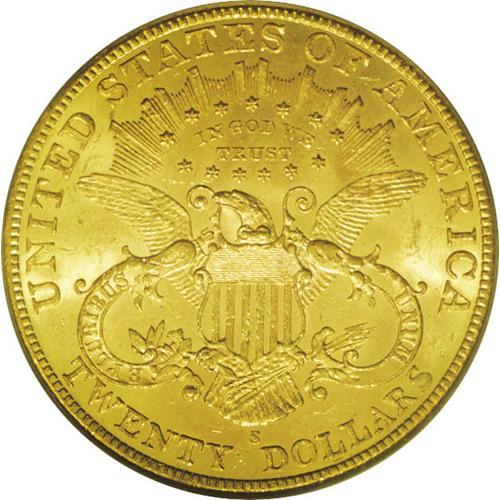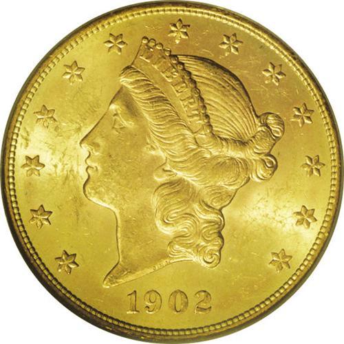 1902-S $20 MS63 PCGS. Sharply struck, as is typical of 1902-S[$20] MS63 PCGS.