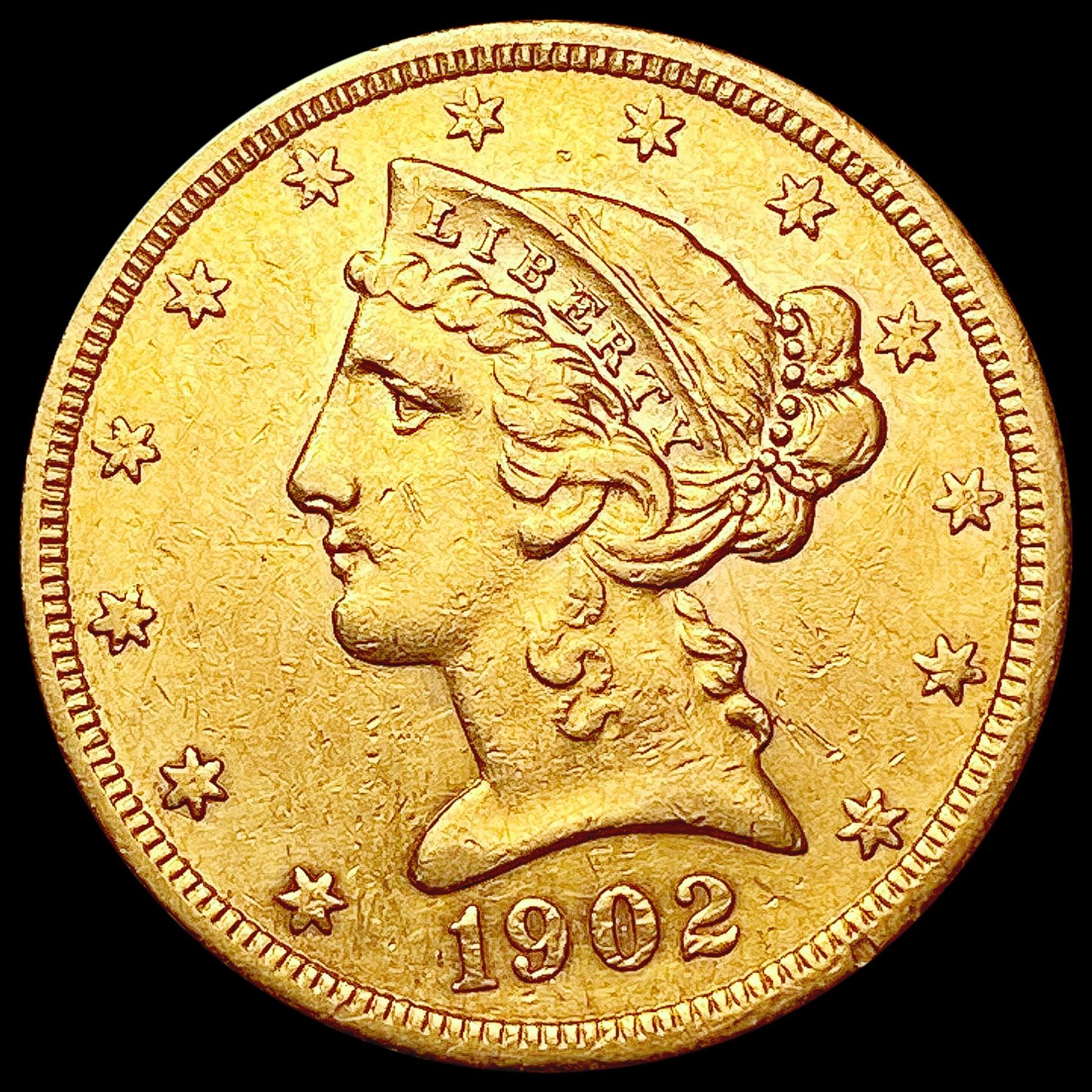 1902-S $5 Gold Half Eagle CLOSELY UNCIRCULATED