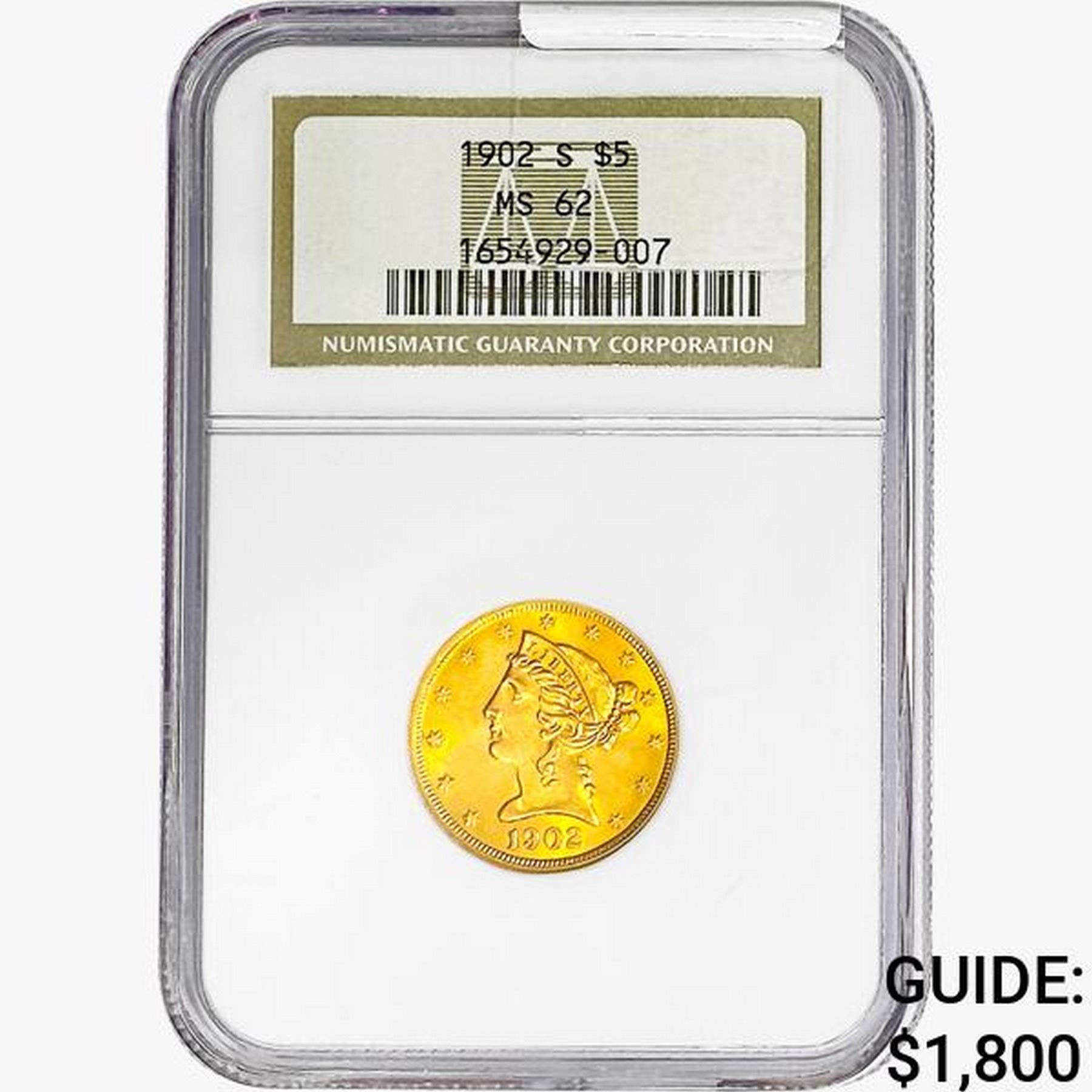 1902-S $5 Gold Half Eagle NGC MS62
