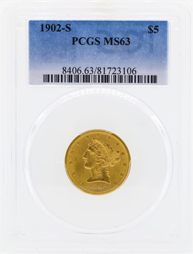 One 1902-S $5 Libertry Head Half Eagle Gold Coin PCGS MS63. PCGS Graded.