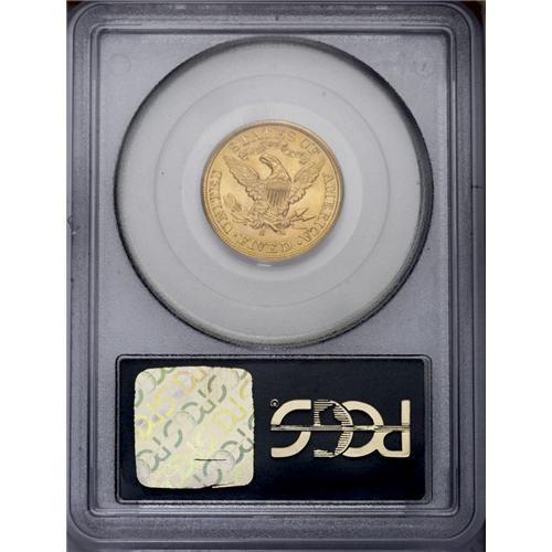 <B>1902-S<$5> MS64 PCGS.</B></I> A highly lustrous and carefully preserved near-Gem that possesses an especially clean reverse. Well struck and pleasing. In a prior generation holder. <BR><BR><B>Important notice:</B> Heritage usually auctions material at the rate of 200-250 lots per hour. On some occasions eBay Live bid software or the Internet may not be able to keep up with the pace of the auction. We recommend placing a realistic absentee bid now as insurance to avoid disappointment. Occasionally the auctioneer may eliminate or reject an eBay Live bid, and the auctioneer may also reopen a lot after the close of the eBay live bidding (usually because we missed an audience bid), and may reject your bid even if it shows you as the winning bidder. By bidding via eBay Live, you agree that Heritage may award the lot to another bidder at its sole discretion under the circumstances described above or any other reasonable circumstances. Since eBay bids are not shown to us until we open the lot on the floor, we treat those bids just like floor bids. In most cases the floor responds before the eBay bid is presented to us, due to Internet lag time, so for consistency we have made it a policy that floor bids are always considered first over tie eBay live bids. Also please note that all Heritage lots purchased through eBay Live carry a 20% Buyer's Premium. Please make sure you read the Terms and Conditions before you bid. This lot is being auctioned in conjunction with a live floor auction by Heritage Galleries & Auctioneers. All final auction and invoice information will be supplied by Heritage Galleries & Auctioneers, and all other information should be considered preliminary. Lot:2850 <BR><BR><B>Winning Notification and Billing:</B> After the FINAL session in this auction is complete, Heritage will send e-mail and snail mail invoices. This process normally takes several days. All final auction and invoice information will be supplied by Heritage Galleries & Auctioneers, and all other information should be considered preliminary. <BR><BR>This auction will be conducted on a live auction floor and over the Internet through eBay Live. If you choose to place an absentee bid, please take a moment to <font color='#0000ff'><u><a href='http://pages.ebay.com/liveauctions/help/before/laabsentee.html'>learn how eBay Live absentee bidding works</a></u></font><font color='#000000'>