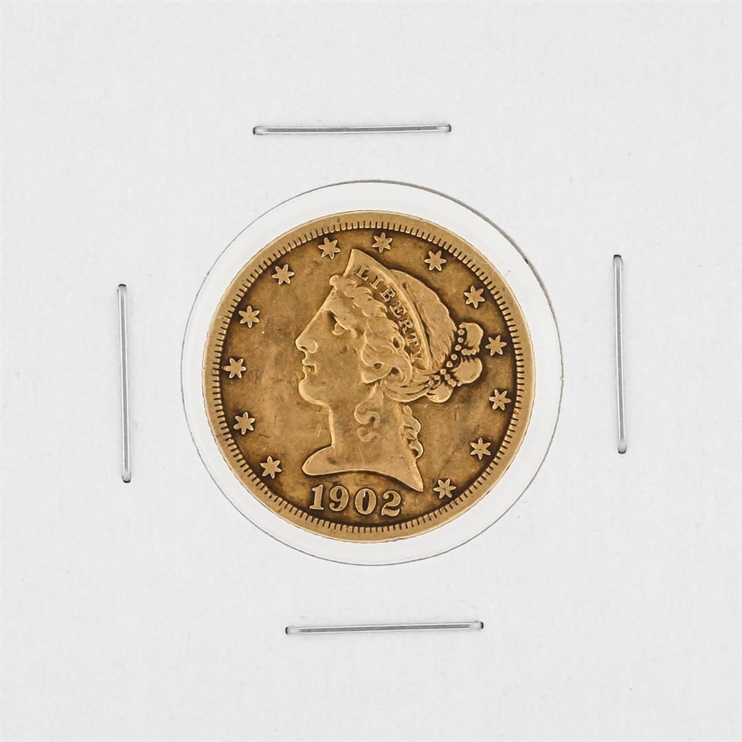 One 1902-S $5 VF Liberty Head Half Eagle Coin.