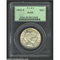 1902-S 50C AU55 PCGS. There is a strong presence of mint luster that still remains on each side of this lightly toned and well struck S-mint.From the Ohio Collection. Important notice: We expect to be auctioning lots at the rate of 200-250 per hour. Sometimes eBay Premier live bid software cannot keep up with that pace, so we strongly recommend that you place a realistic proxy bid now as insurance to avoid disappointment. Also please note that all Heritage/CAA lots purchased through eBay Premier carry a 20% Buyer's Premium. Please make sure you read the Terms and Conditions.