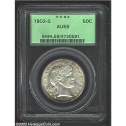 1902-S 50C AU58 PCGS. Bright with almost complete mint luster remaining. Each side is mostly brilliant with some peripheral color around the obverse periphery. A very collectible grade for this scarcer mintmarked Half.From the Ohio Collection. Important notice: We expect to be auctioning lots at the rate of 200-250 per hour. Sometimes eBay Premier live bid software cannot keep up with that pace, so we strongly recommend that you place a realistic proxy bid now as insurance to avoid disappointment. Also please note that all Heritage/CAA lots purchased through eBay Premier carry a 20% Buyer's Premium. Please make sure you read the Terms and Conditions.