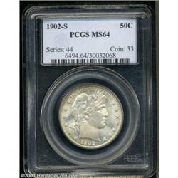 <table><tr><td><TABLE cellSpacing=0 cellPadding=0 width="100%" bgColor=#000000 border=0><TBODY> <TR><TD width="100%"><TABLE cellSpacing=1 cellPadding=3 width="100%" border=0><TBODY><TR><TD width="100%" bgColor=#79735c><FONT face=arial color=#ffffff size=3><B>Description</B> </FONT></TD></TR><TR><TD width="100%" bgColor=#ffffff><FONT face=arial size=2><B>1902-S 50C MS64 PCGS.</B></I> Like other early twentieth-century Barber halves, this issue was apparently not kept from circulation in quantities sufficient to meet the collector demands of later years. As a result, few examples survive in Mint State. The current offering, therefore, is one of the precious few to be carefully preserved, from a total mintage of 1.46 million. Sharply struck, and seemingly kept from the Gem designation only by a milling mark on Liberty's cheek, the reverse is virtually blemish-free. Full luster shines through the light golden-gray toning that appears over both sides, lending a high degree of eye appeal to this scarce near-Gem. Population: 7 in 64, 11 finer (8/03).<BR><I>From the Andy Geosits Collection of Barber Halves.</B></I> </FONT></TD></TR></TBODY></TABLE></TD></TR></TBODY></TABLE><BR><A name=PricesRealized></A><TABLE cellSpacing=0 cellPadding=0 width="100%" bgColor=#000000 border=0><TBODY><TR><TD width="100%"><TABLE cellSpacing=1 cellPadding=3 width="100%" border=0><TBODY><TR><TD width="100%" bgColor=#79735c><A name=PR><FONT face=arial color=#ffffff size=3><B>Previous Prices from Heritage Auctions</B> </FONT></A></TD></TR><TR><TD bgColor=#f6f6ed><TABLE cellSpacing=0 cellPadding=0 width="100%" border=1><TBODY><TR><TD align=middle width="33%"><B>Date</B></TD><TD align=middle width="33%"><B>Service</B></TD><TD align=middle width="33%"><B>Price</B></TD></TR><TR bgColor=whitesmoke><TD width="33%"><B>09/28/2002</B></TD><TD width="33%">PCGS</TD><TD width="33%">$3,335.00</TD></TR><TR bgColor=whitesmoke><TD width="33%"><B>04/01/1999</B></TD><TD width="33%">PCGS</TD><TD width="33%">$2,667.00</TD></TR></TBODY></TABLE></TD></TR><TR><TD bgColor=#ffffff><FONT face=arial size=1 ?>PLEASE NOTE: All prices realized reflect the final hammer price PLUS the buyer's premium in auctions that charge a buyer's premium. Each item has a notation at the top of the listing indicating whether that lot included a buyer's premium. Example: A item that sells with a final hammer price of $100 and a 20% buyer's premium will display with a price realized of $120. All information listed is intended to be as accurate as possible, but errors are possible. Please use this guide carefully and inform us of any inaccuracies. </FONT></TD></TR></TBODY></TABLE></TD></TR></TBODY></TABLE><BR><TABLE cellSpacing=0 cellPadding=0 width="100%" bgColor=#000000 border=0><TBODY><TR><TD width="100%"><TABLE cellSpacing=1 cellPadding=3 width="100%" border=0><TBODY><TR><TD width="100%" bgColor=#79735c colSpan=6><FONT face=arial color=#ffffff size=3><B>Price Guide*</B> </FONT></TD></TR><TR bgColor=#f6f6ed><TD align=middle><B>Grade</B> </TD><TD align=middle><B>Coin World<BR>(Trends)</B> </TD><TD align=middle><B>Numismedia<BR>Retail</B> </TD><TD align=middle><B>Numismedia<BR>Wholesale</B> </TD><TD align=middle><B>Coin<BR>Universe</B> </TD><TD align=middle><B>Heritage<BR>Value Index</B> </TD></TR><TR bgColor=#ffffff><TD align=middle>63</TD><TD align=right>$1,800.00</TD><TD align=right>---</TD><TD align=right>$1,575.00</TD><TD align=right>$1,950.00</TD><TD align=right>$1,295.00</TD></TR><TR style="FONT-WEIGHT: bold" bgColor=#cccfdd><TD align=middle>64</TD><TD align=right>$5,300.00</TD><TD align=right>---</TD><TD align=right>$2,725.00</TD><TD align=right>$3,950.00</TD><TD align=right>$3,148.33</TD></TR><TR bgColor=#ffffff><TD align=middle>65</TD><TD align=right>$7,000.00</TD><TD align=right>---</TD><TD align=right>---</TD><TD align=right>$5,725.00</TD><TD align=right>$4,469.17</TD></TR><TR bgColor=#ffffff><TD colSpan=6><FONT size=1>*All information listed is intended to be as accurate as possible, but errors are possible. No item may be returned or refused based on this information which is provided as a service to our customers. You should contact each pricing source directly to determine the accuracy of this information. </FONT></TD></TR></TBODY></TABLE></TD></TR></TBODY></TABLE><BR><TABLE cellSpacing=0 cellPadding=0 width="100%" bgColor=#000000 border=0><TBODY><TR><TD width="100%"><TABLE cellSpacing=1 cellPadding=3 width="100%" border=0><TBODY><TR><TD width="100%" bgColor=#79735c><FONT face=arial color=#ffffff size=3><B>Population Guide</B> </FONT></TD></TR><TR bgColor=#ffffff><TD align=middle><!-- Begin Output of Population Grid--><TABLE cellSpacing=0 cellPadding=0 width="100%" border=0><TBODY><TR><TD vAlign=center><TABLE cellSpacing=0 width="100%" border=1 cellsadding="3"><TBODY><TR><TD vAlign=center><TABLE cellSpacing=0 cellPadding=3 width="100%" border=1><TBODY><TR><TD vAlign=center align=middle bgColor=#f0f1e8 colSpan=2 <CENTER><FONT face=Arial size=2><B>PCGS Pop </B></FONT><CENTER></CENTER></TD><TD vAlign=center align=middle bgColor=#f0f1e8 colSpan=2><CENTER><FONT face=Arial size=2><B>NGC Pop</B></CENTER></FONT></TD></TR><TR><TD vAlign=center><FONT face=Arial size=2>(64)</FONT> </TD><TD vAlign=center align=right><FONT face=Arial size=2>7</FONT> </TD><TD vAlign=center><FONT face=Arial size=2>(64)</FONT> </TD><TD vAlign=center align=right><FONT face=Arial size=2>5</FONT> </TD></TR><TR><TD vAlign=center><FONT face=Arial size=2>(>64)</FONT> </TD><TD vAlign=center align=right><FONT face=Arial size=2>11</FONT> </TD><TD vAlign=center><FONT face=Arial size=2>(>64)</FONT> </TD><TD vAlign=center align=right><FONT face=Arial size=2>11</FONT> </TD></TR></TBODY></TABLE></TD></TR></TBODY></TABLE></TD></TR></TBODY></TABLE><!-- End Output of Population Grid--></TD></TR></TBODY></TABLE></TD></TR></TBODY></TABLE><BR><TABLE cellSpacing=0 cellPadding=0 width="100%" bgColor=#000000 border=0><TBODY><TR> Important notice: Heritage usually auctions material at the rate of 200-250 l