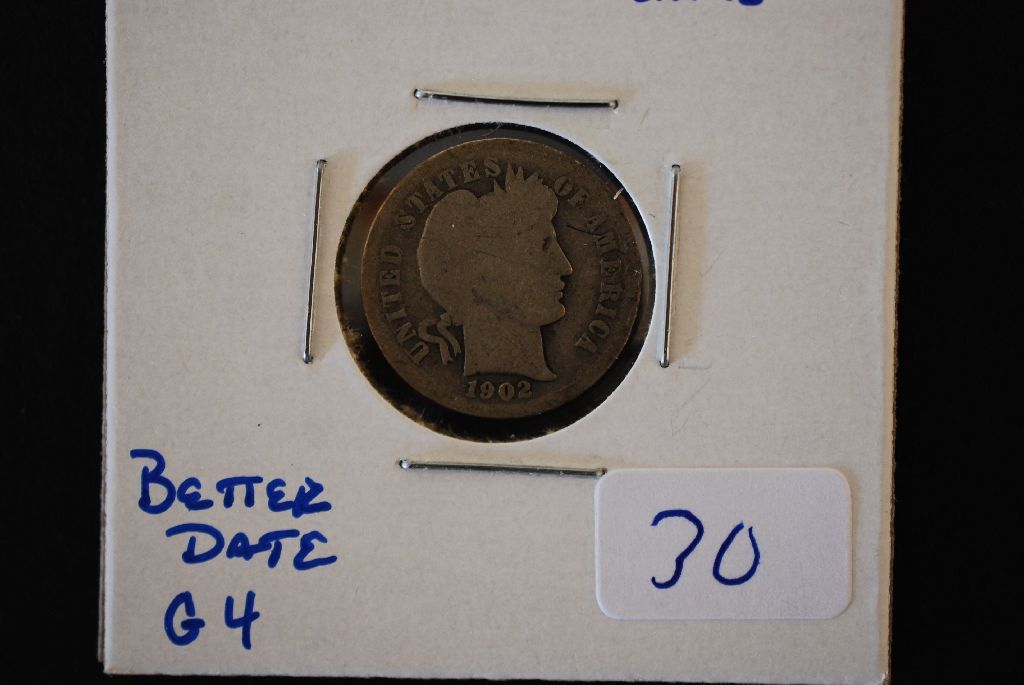 1902-S Barber One Dime; Better Date; G4; EST. $10-20