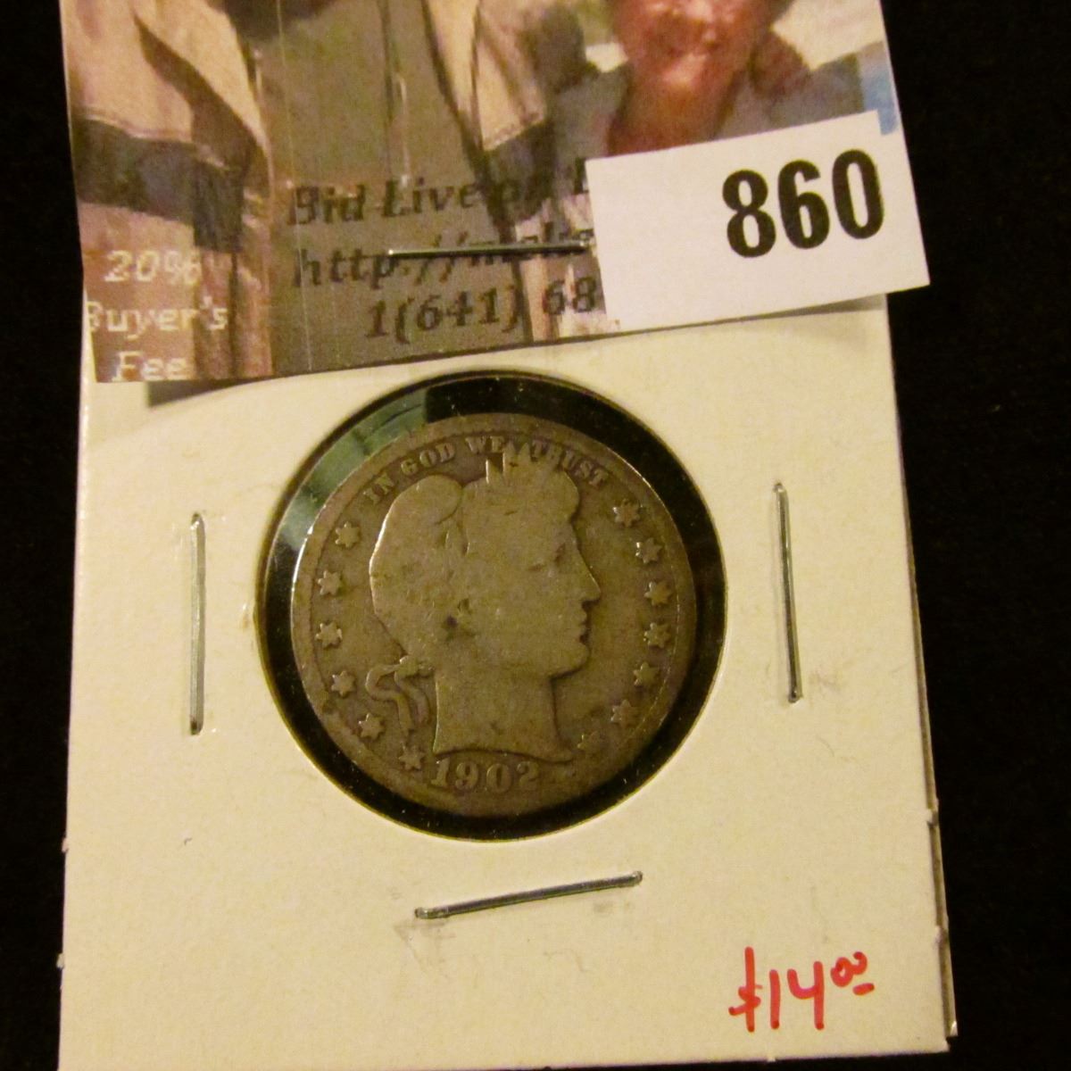 1902-S Barber Quarter, G, better date, value $14