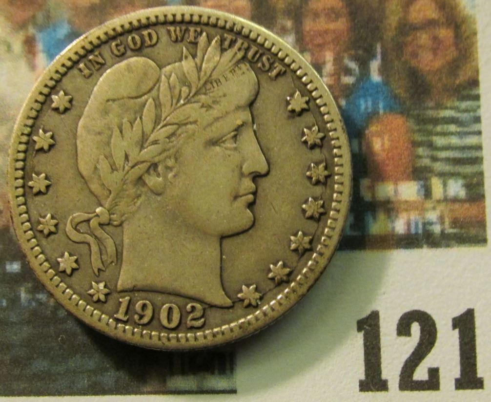 1902 S Barber Quarter, VF.
