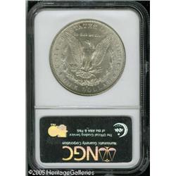 <B>1902-S<img border='0' src='http://www.heritagecoins.com/images/star.gif' width=10 height=10>$1 MS64 NGC.</B></I> Splashes of multicolored toning roll over the obverse. Roller marks are seen over each side, especially on the reverse. Lot:10605