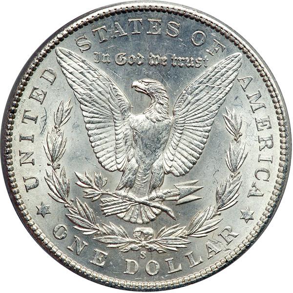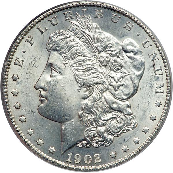 1902-S Morgan Dollar. PCGS graded MS-62. Untoned, a scarcer S-mint date struck after the turn of the 20th century. Very few bagmarks on this attractive specimen (PCGS # 7282) .