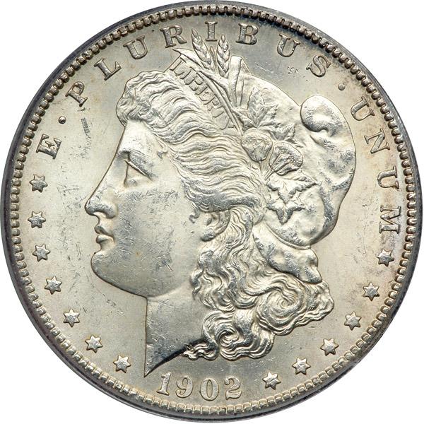 1902-S Morgan Dollar. PCGS graded MS-63. Well struck and frosty, another choice S-mint date struck at the turn of the 20th Century (PCGS # 7282) .