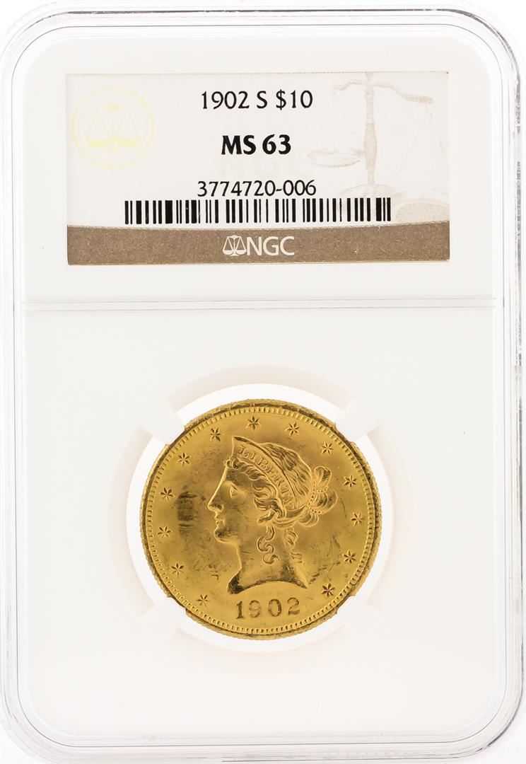 One 1902-S NGC MS63 $10 Liberty Head Eagle Gold Coin. NGC Certified.