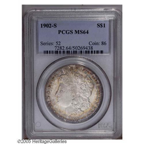 1902-S S$1 MS64 PCGS. Beautifully toned with periphera 1902-S[S$1] MS64 PCGS.