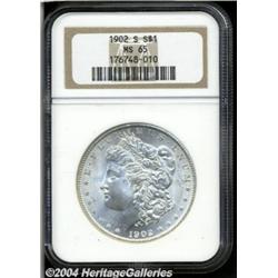 <B>1902-S<S$1> MS65 NGC.</B></I> The 1902-S is a very scarce Morgan Dollar in strict Gem condition. The roller marks usually found on this issue preclude a 65 grade, no matter how clean the surfaces are. This piece, however, shows none of these roller marks and the surfaces are bright and satiny, the coin having obviously been meticulously preserved since the year of issue. Reasonably well struck, considering the use of the C4 reverse die, and a lovely coin overall without a hint of color. <BR><BR><B>Important notice:</B> Heritage usually auctions material at the rate of 200-250 lots per hour. On some occasions eBay Live bid software or the Internet may not be able to keep up with the pace of the auction. We recommend placing a realistic absentee bid now as insurance to avoid disappointment. Occasionally the auctioneer may eliminate or reject an eBay Live bid, and the auctioneer may also reopen a lot after the close of the eBay live bidding (usually because we missed an audience bid), and may reject your bid even if it shows you as the winning bidder. By bidding via eBay Live, you agree that Heritage may award the lot to another bidder at its sole discretion under the circumstances described above or any other reasonable circumstances. Since eBay bids are not shown to us until we open the lot on the floor, we treat those bids just like floor bids. In most cases the floor responds before the eBay bid is presented to us, due to Internet lag time, so for consistency we have made it a policy that floor bids are always considered first over tie eBay live bids. Also please note that all Heritage lots purchased through eBay Live carry a 20% Buyer's Premium. Please make sure you read the Terms and Conditions before you bid. </span></font></tr></table></td></tr></table>