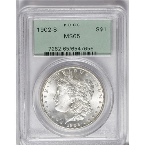 <B>1902-S<img border='0' src='http://www.heritagecoins.com/images/star.gif' width=10 height=10>$1> MS65 PCGS.</B></I> Smooth and satiny with brilliant silver surfaces and wispy golden-brown toning on the reverse. This is an important date that is highly elusive in Gem grades, and almost never encountered any finer than this example. PCGS has only certified 28 finer pieces (8/06).